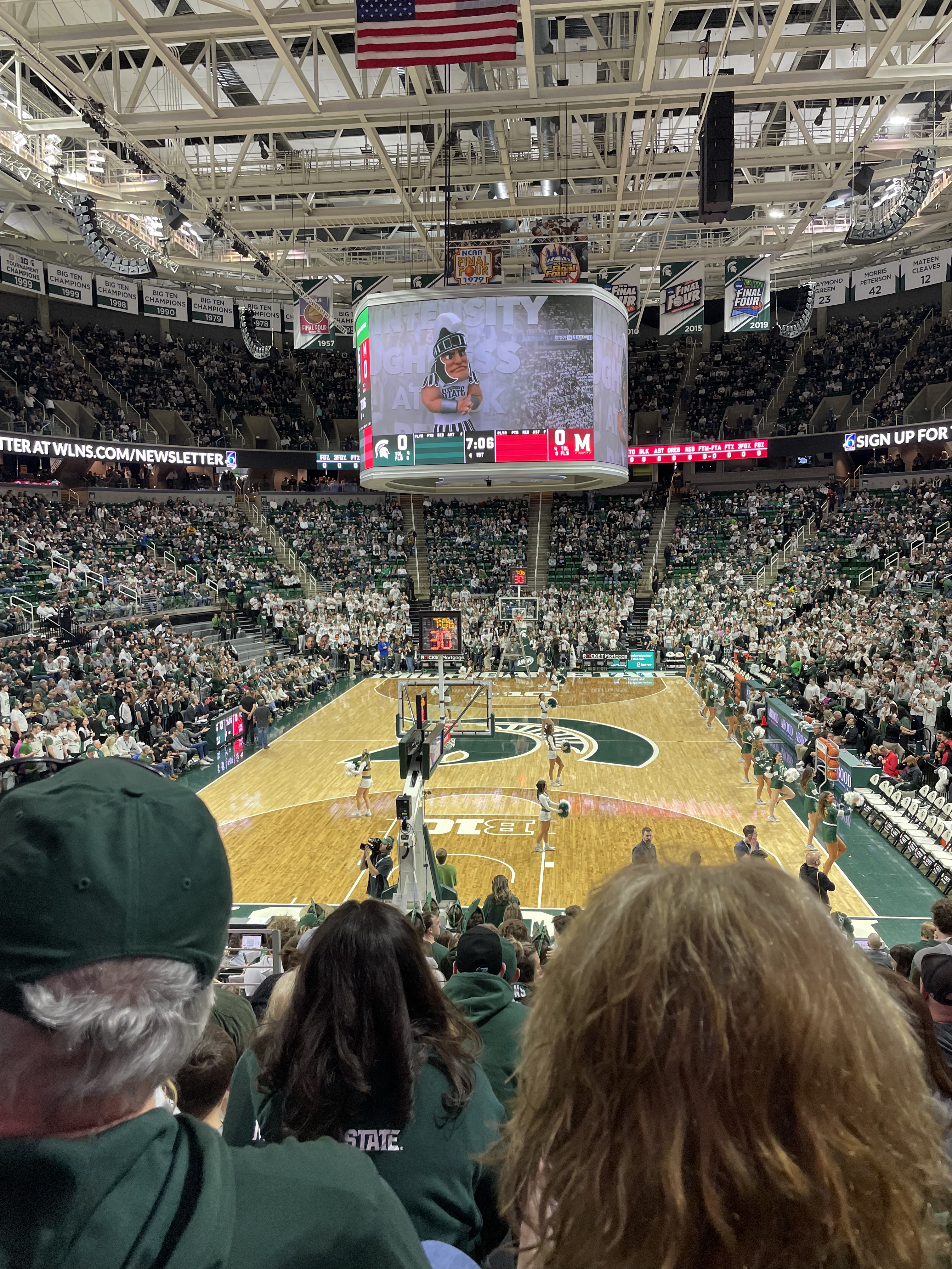 This past Saturday, February 3rd I was able to attend the Spartan’s game against the Maryland Terrapins. Although I attended Michigan State for 1 year I was never able to attend a game. As soon as I was inside I could feel the energy and shortly found where I could pick up the 2 beers I’m allowed to purchase(I’m 21). The seats that my friend and I had were great. They were behind the net but up high enough where you could still see everything on both ends. MSU had already beat Maryland on the road which is very hard to do in college basketball so I went into this game expecting a dominant Michigan State win. Although Michigan State won and covered the spread of -6.5, it was far from dominant. The game felt like pretty much every MSU game from the last 4 years. The Spartans started off strong led by senior guard Tyson Walker who was cooking early by hitting some of his patented mid range pull ups. MSU took a 4 point 31-27 lead into half-time after an ugly first half. Unfortunately I did not catch a T shirt during the halftime show, but now it was time for the 2nd half. Like I said before this game felt like the average Michigan State game from the past few years. This would mean that Maryland is going to go on a run and soon enough they did. The Terps gained a short lead at 43-42 which was fueled due to some hot shooting of Donta Scott along with the incompetent defense and rebounding of Michigan State. Starting center for the Spartans, Mady Sissoko, continues to be a liability on the glass. It seems like he drops every single rebound which leads to second chance opportunities for teams. From my view it seem like MSU was also not able to defend the high pick and roll that Maryland was running to get Donta Scott open. At this point Izzo was fed up and called a timeout. Whatever Izzo said in that timeout worked because Michigan State finally started to look like they should in the final 8 minutes of the game. The Spartans were turning defense into offense. Forward Malik Hall was getting to his spot on the block with ease and hitting his signature spin move for buckets. Hall led the Spartans with 19 points and 7 rebounds on Saturday. As the title says, an ugly win is still a win. I really enjoyed my time in East Lansing this weekend seeing some friends along with a Spartans W. The Spartans next game is this Tuesday, February 6th at 9PM @ Minnesota on the B10 Network.